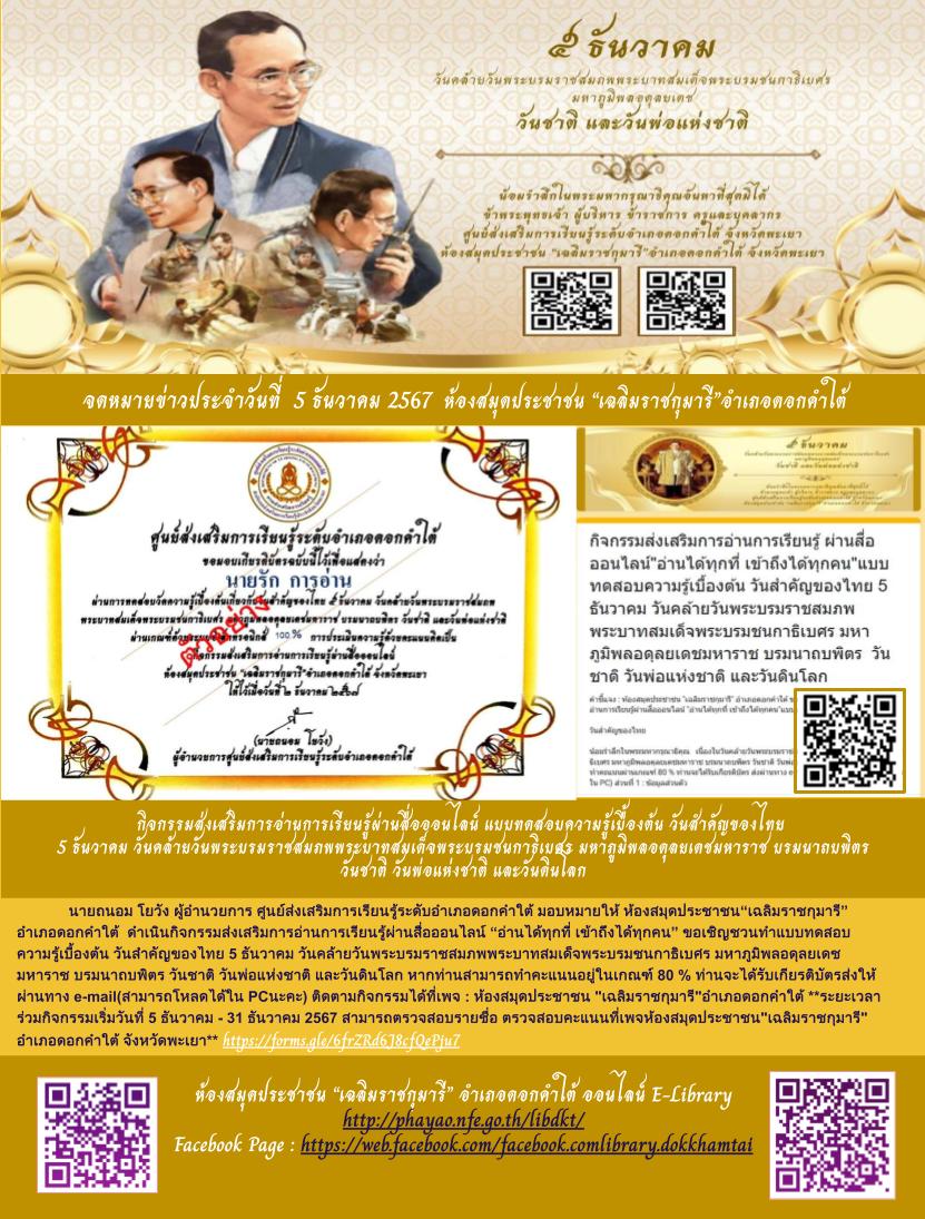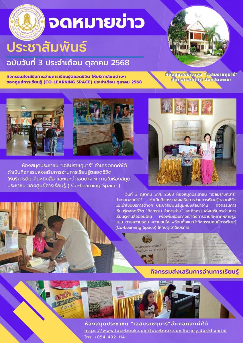 กิจกรรม : ห้องสมุดประชาชน "เฉลิมราชกุมารี" อำเภอดอกคำใต้