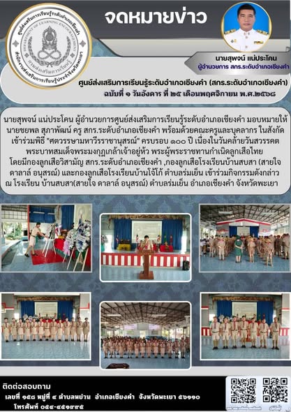 เข้าร่วมพิธีเจริญพระพุทธมนต์และทำบุญตักบาตรถวายพระราชกุศลกิจกรรมเฉลิมพระเกียรติ สมเด็จพระเจ้าภคินีเธอ เจ้าฟ้าเพชรรัตนราชสุดา สิริโสภาพัณณวดี เนื่องในว...