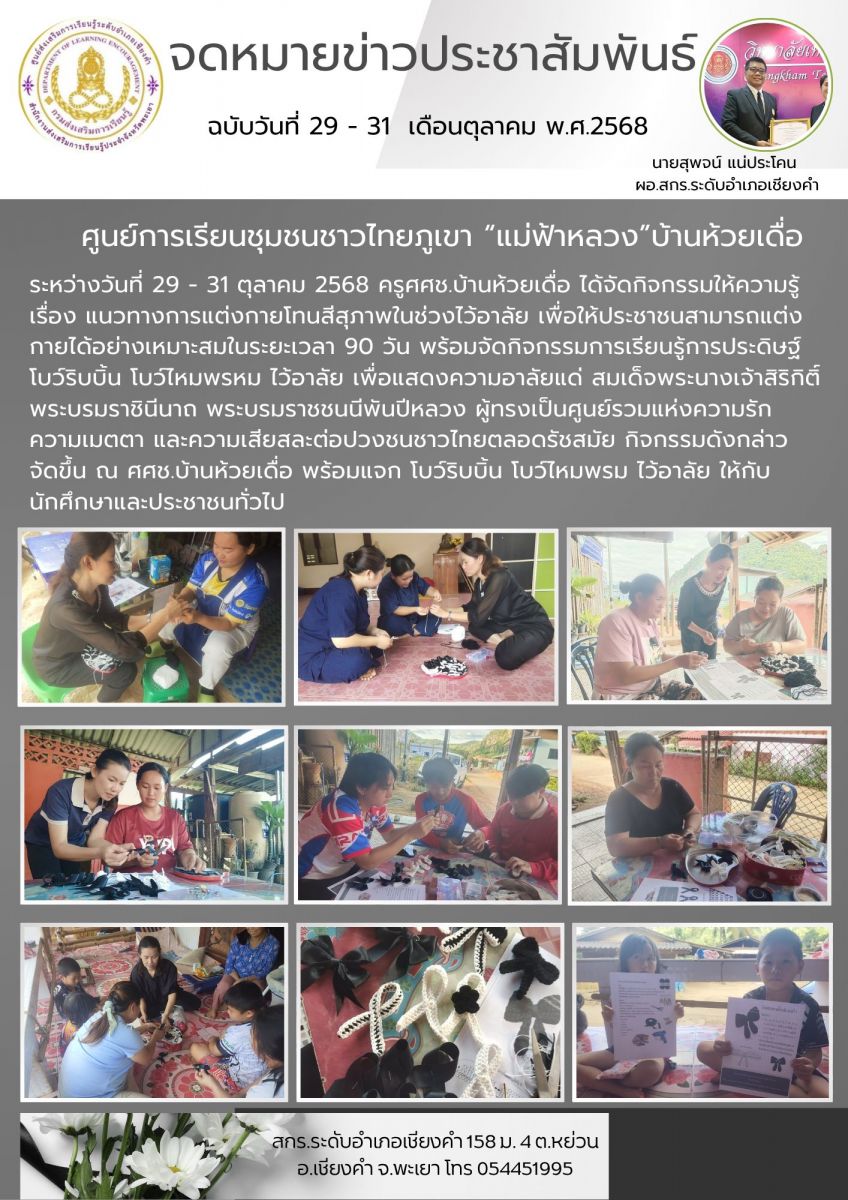 จัดกิจกรรมให้ความรู้เรื่อง แนวทางการแต่งกายโทนสีสุภาพในช่วงไว้อาลัย เพื่อให้ประชาชนสามารถแต่งกายได้อย่างเหมาะสมในระยะเวลา 90 วัน พร้อมจัดกิจกรรมการเร...