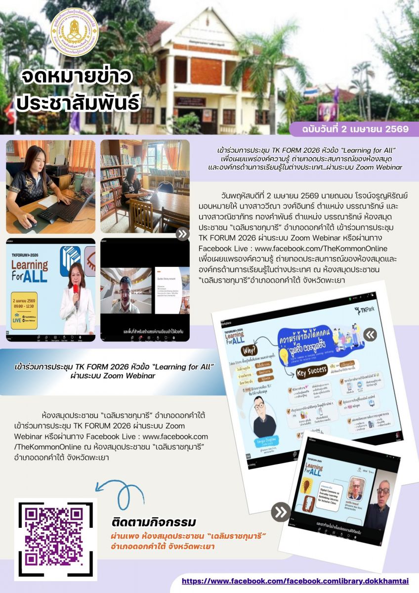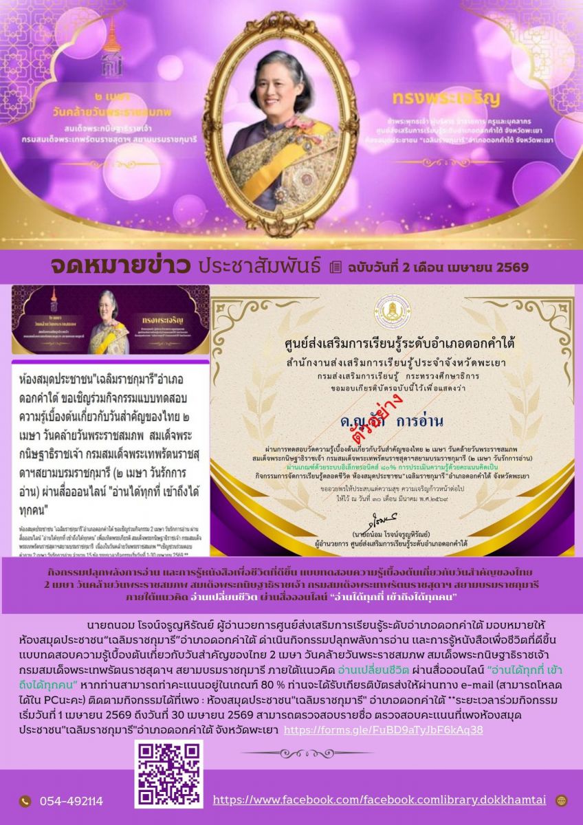 กิจกรรม : ห้องสมุดประชาชน "เฉลิมราชกุมารี" อำเภอดอกคำใต้