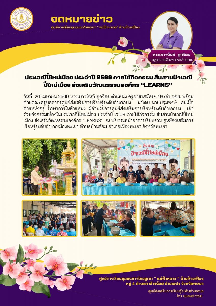 กิจกรรมเนื่องในประเวณีปี๋ใหม่เมือง ประจำปี 2569 ภายใต้กิจกรรม สืบสานป๋าเวณีปี๋ใหม่เมือง ส่งเสริมวัฒนธรรมองค์กร “LEARNS” ...