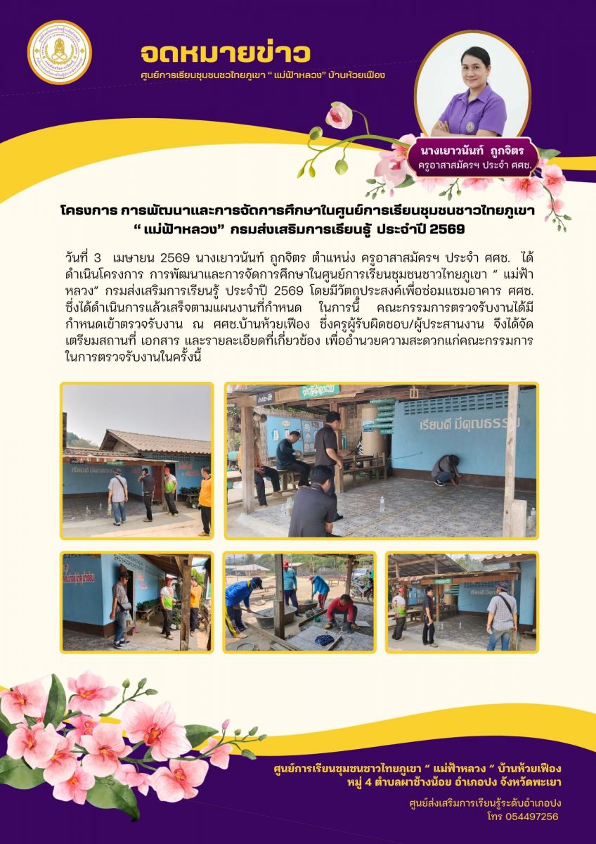 โครงการ การพัฒนาและการจัดการศึกษาในศูนย์การเรียนชุมชนชาวไทยภูเขา “ แม่ฟ้าหลวง” กรมส่งเสริมการเรียนรู้ ประจำปี 2569...