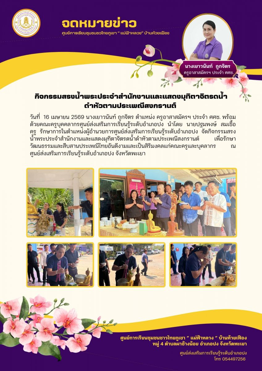 กิจกรรมสรงน้ำพระประจำสำนักงานและแสดงมุทิตาจิตรดน้ำดำหัวตามประเพณีสงกรานต์...