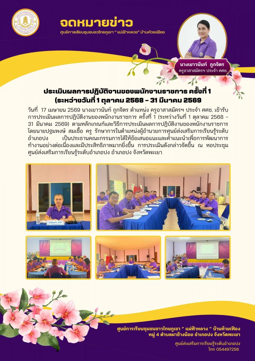 รับการประเมินผลการปฏิบัติงานของพนักงานราชการ ครั้งที่ 1 (ระหว่างวันที่ 1 ตุลาคม 2568 – 31 มีนาคม 2569)...