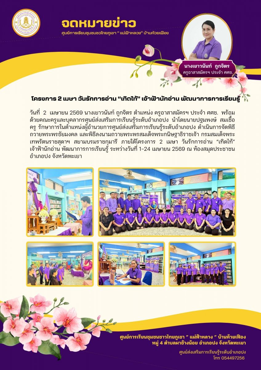 โครงการ 2 เมษา วันรักการอ่าน “เทิดไท้” เจ้าฟ้านักอ่าน พัฒนาการการเรียนรู้ ระหว่างวันที่ 1-24 เมษายน 2569...