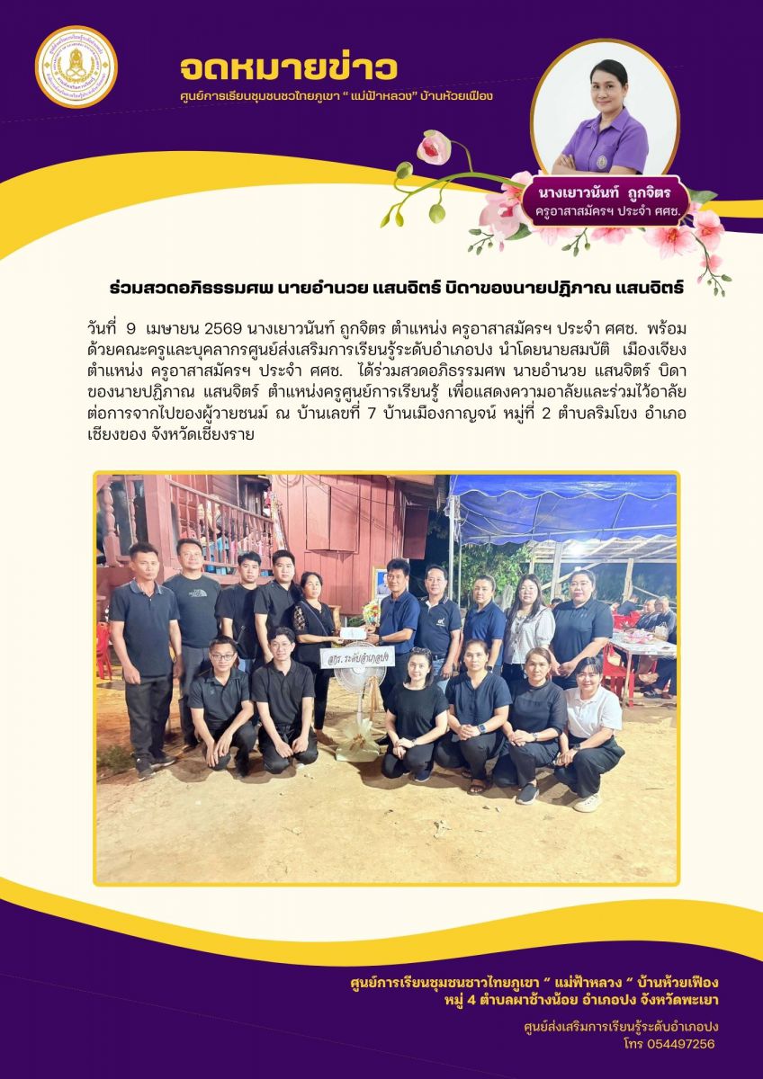 สวดอภิธรรมศพ นายอำนวย แสนจิตร์ บิดาของนายปฏิภาณ แสนจิตร์ ตำแหน่งครูศูนย์การเรียนรู้...