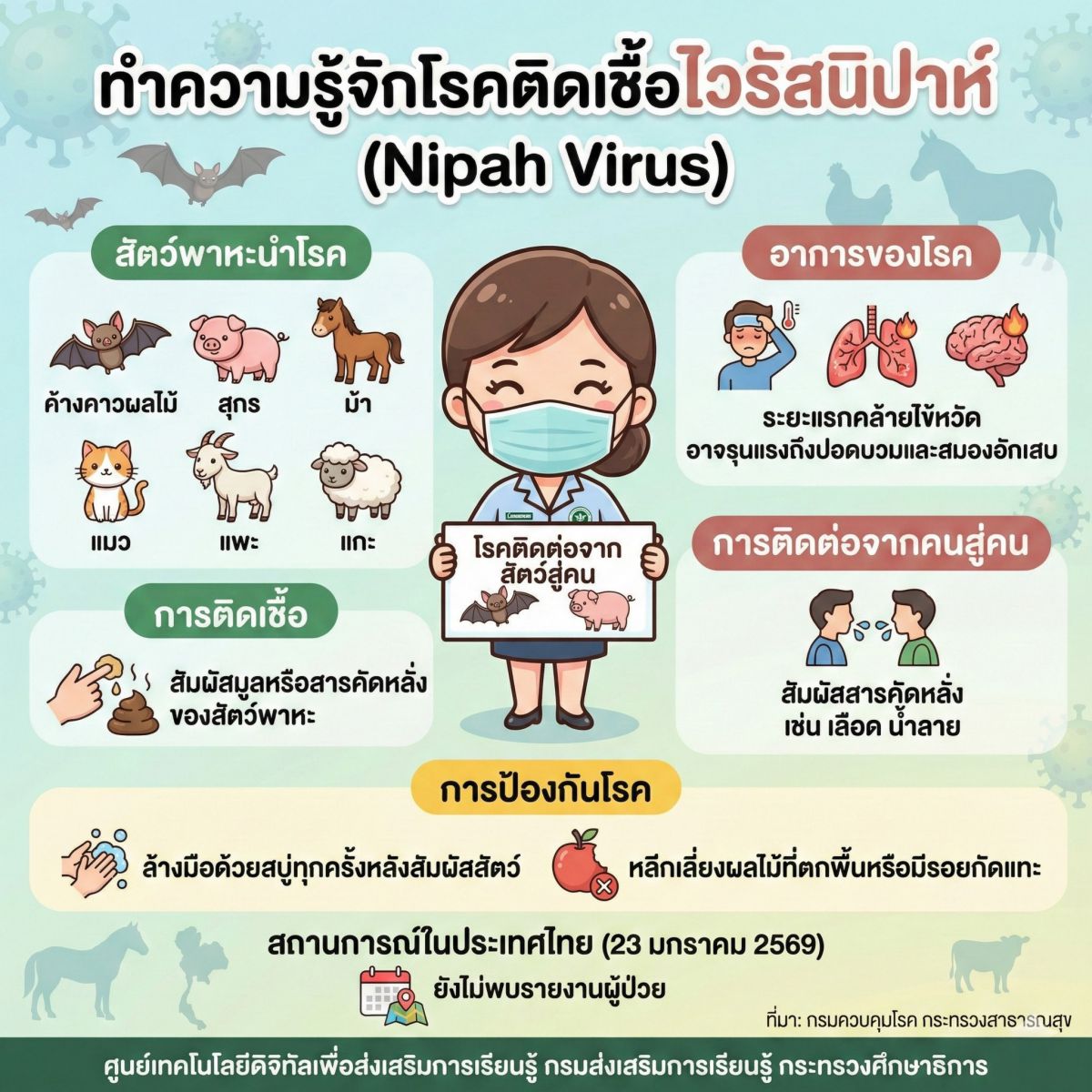 ขออนุญาตแชร์ความรู้ใหม่..โรคติดเชื้อไวรัสนิปาห์ (Nipah Virus) โรคอุบัติใหม่ที่ติดต่อจากสัตว์สู่คน ...