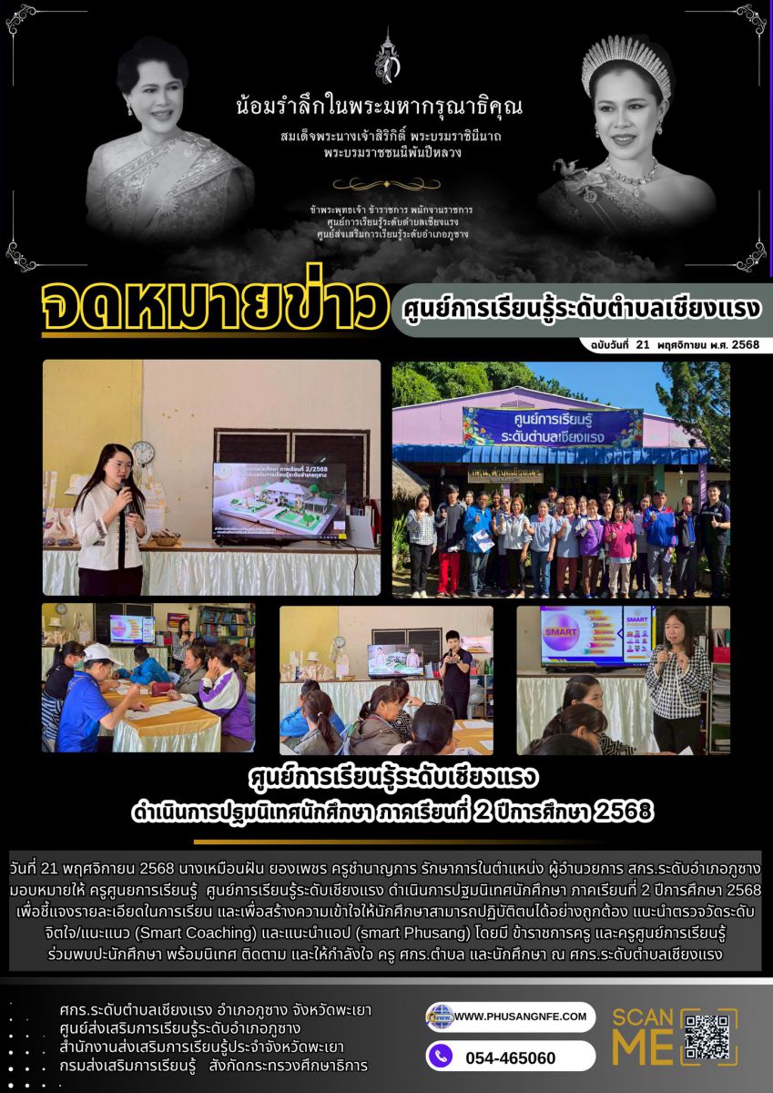 วันที่ 21 พฤศจิกายน 2568 นางเหมือนฝัน ยองเพชร ครูชำนาญการ รักษาการในตำแหน่ง ผู้อำนวยการ สกร.ระดับอำเภอภูซาง มอบหมายให้ ครูศูนยการเรียนรู้ ศูนย์การเรี...