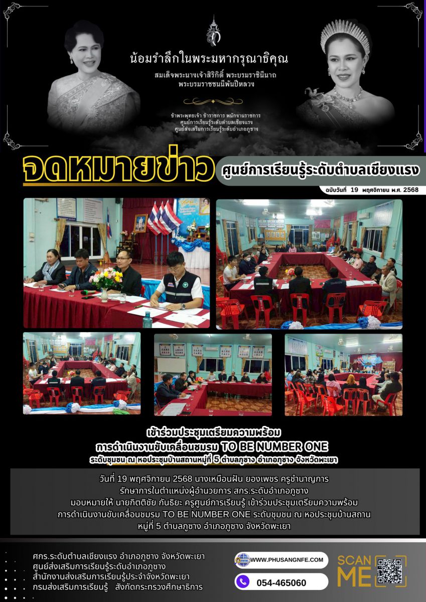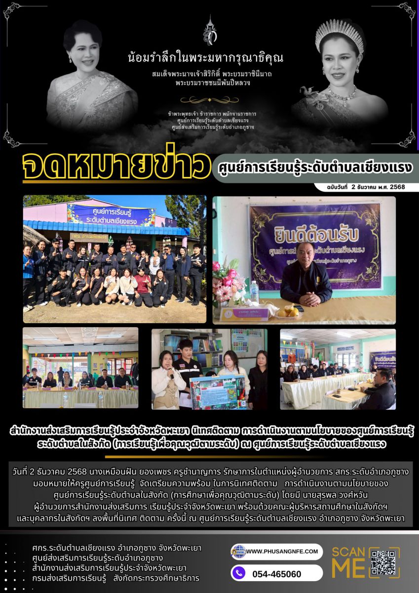 วันที่ 19 พฤศจิกายน 2568 นางเหมือนฝัน ยองเพชร ครูชำนาญการ รักษาการในตำแหน่งผู้อำนวยการ สกร.ระดับอำเภอภูซาง มอบหมายให้ นายกิตติชัย กันธิยะ ครูศูนย์การเ...