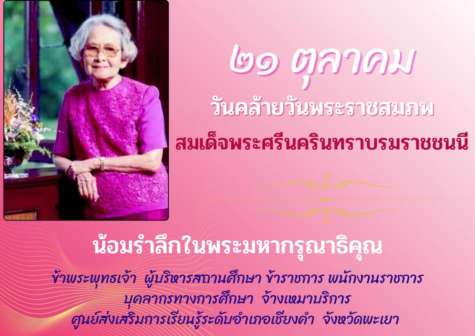๒๑ ตุลาคม วันคล้ายวันพระราชสมภพ สมเด็จพระศรีนครินทราบรมราชชนนี....... น้อมรำลึกในพระมหากรุณาธิคุณ...