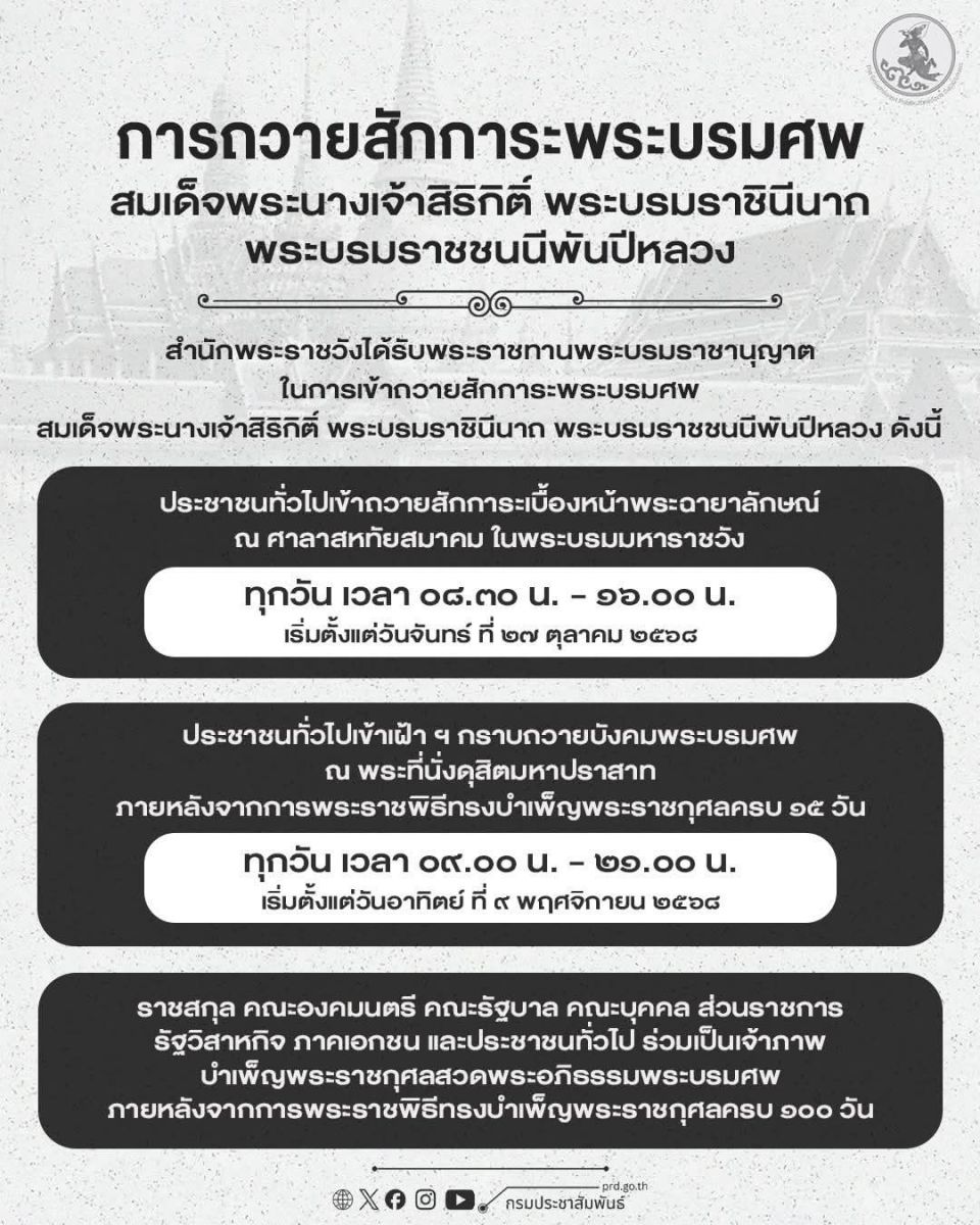 ประชาสัมพันธ์ .. รายละเอียดการเปิดให้ประชาชนถวายสักการะพระบรมศพ สมเด็จพระนางเจ้าสิริกิติ์ พระบรมราชินีนาถ พระบรมราชชนนีพันปีหลวง...