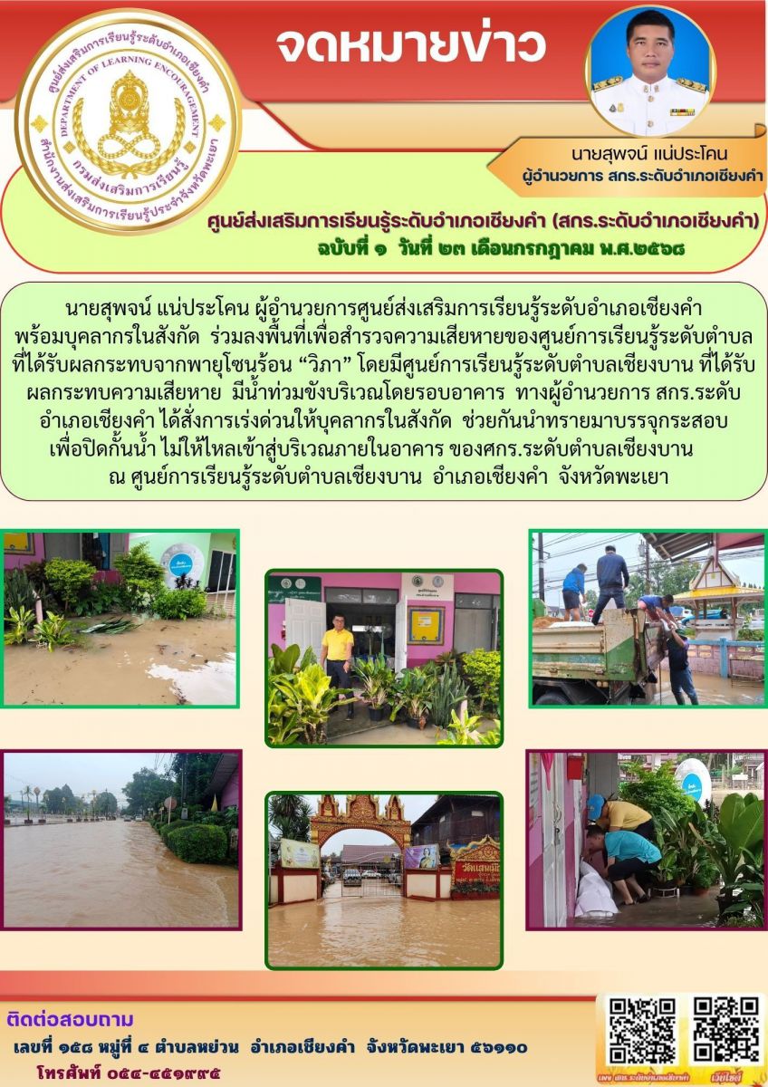 ร่วมลงพื้นที่เพื่อสำรวจความเสียหายของศูนย์การเรียนรู้ระดับตำบล ที่ได้รับผลกระทบจากพายุโซนร้อน “วิภา”...