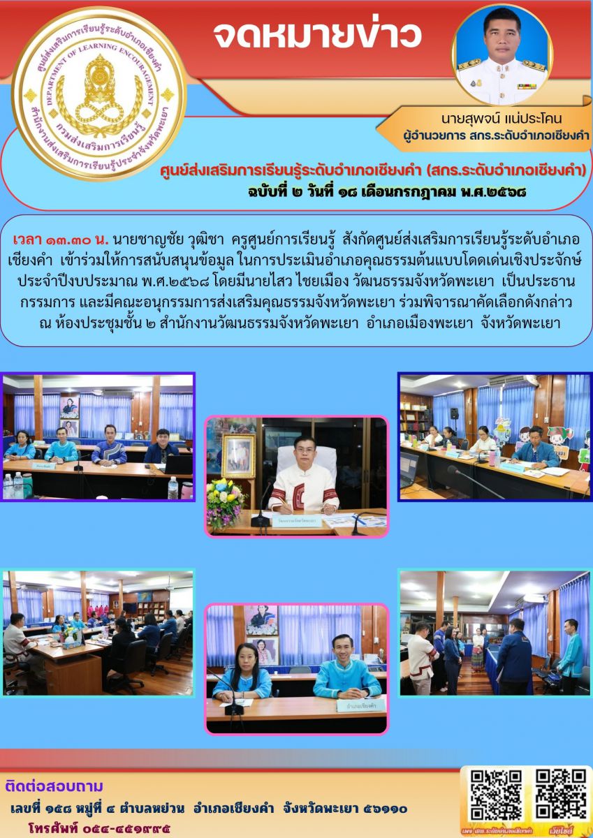 เข้าร่วมให้การสนับสนุนข้อมูล ในการประเมินอำเภอคุณธรรมต้นแบบโดดเด่นเชิงประจักษ์ ประจำปีงบประมาณ พ.ศ.๒๕๖๘ ...