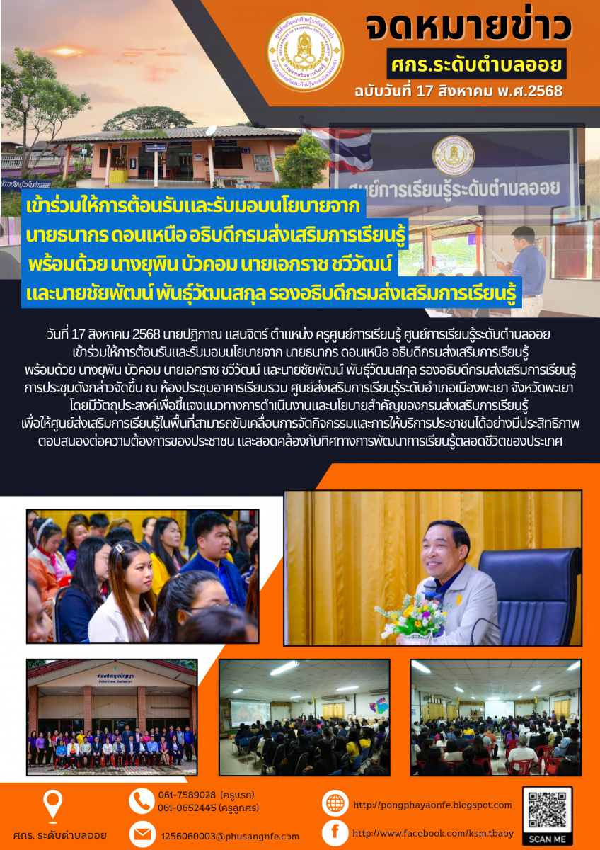 เข้าร่วมให้การต้อนรับและรับมอบนโยบายจาก นายธนากร ดอนเหนือ อธิบดีกรมส่งเสริมการเรียนรู้ พร้อมด้วย นางยุพิน บัวคอม นายเอกราช ชวีวัฒน์ และนายชัยพัฒน์ พัน...