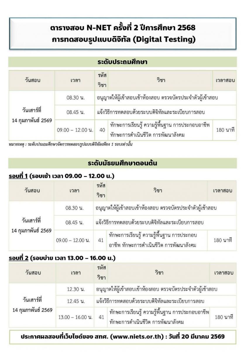 ประชาสัมพันธ์ตารางสอบ N-NET ครัังที่ 2 ปีการศึกษา 2568 สถานศึกษาในสังกัดกรมส่งเสริมการเรียนรู้...