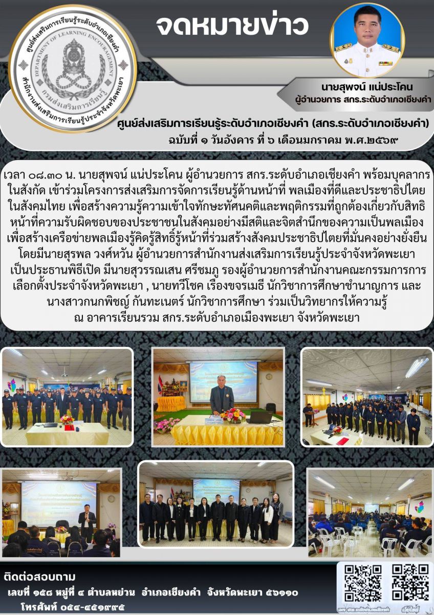 บุคลากรเข้าร่วมโครงการส่งเสริมการจัดการเรียนรู้ด้านหน้าที่ พลเมืองที่ดีและประชาธิปไตยในสังคมไทย...