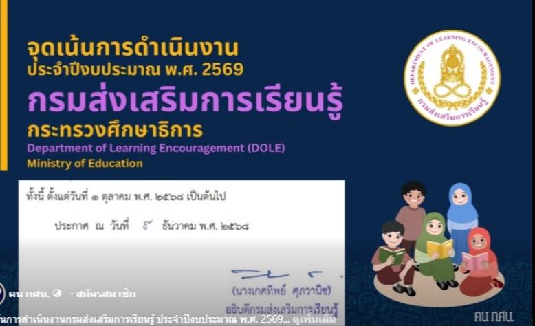 จุดเน้นการดำเนินงานกรมส่งเสริมการเรียนรู้(สกร.) ประจำปีงบประมาณ พ.ศ. 2569...