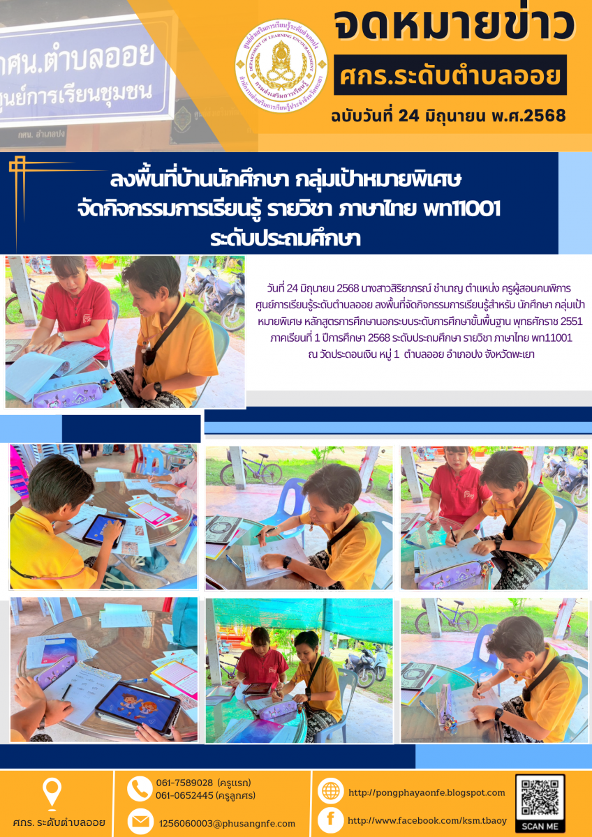 ลงพื้นที่บ้านนักศึกษา กลุ่มเป้าหมายพิเศษ จัดกิจกรรมการเรียนรู้ หลักสูตรการศึกษานอกระบบระดับการศึกษาขั้นพื้นฐาน พุทธศักราช 2551 ภาคเรียนที่ 1 ปีการศึกษ...