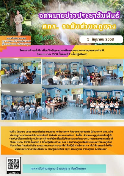 วันที่ ๖ มิถุนายน ๒๕๖๘ เวลา ๐๙.๐๐ น. บุคลากร สกร.ระดับอำเภอเชียงคำ ร่วมจัดผ้าริ้วตกแต่งสถานที่ ในการรับการตรวจเยี่ยมจาก พลตำรวจเอกประจวบ วงศ์สุข รองผู...
