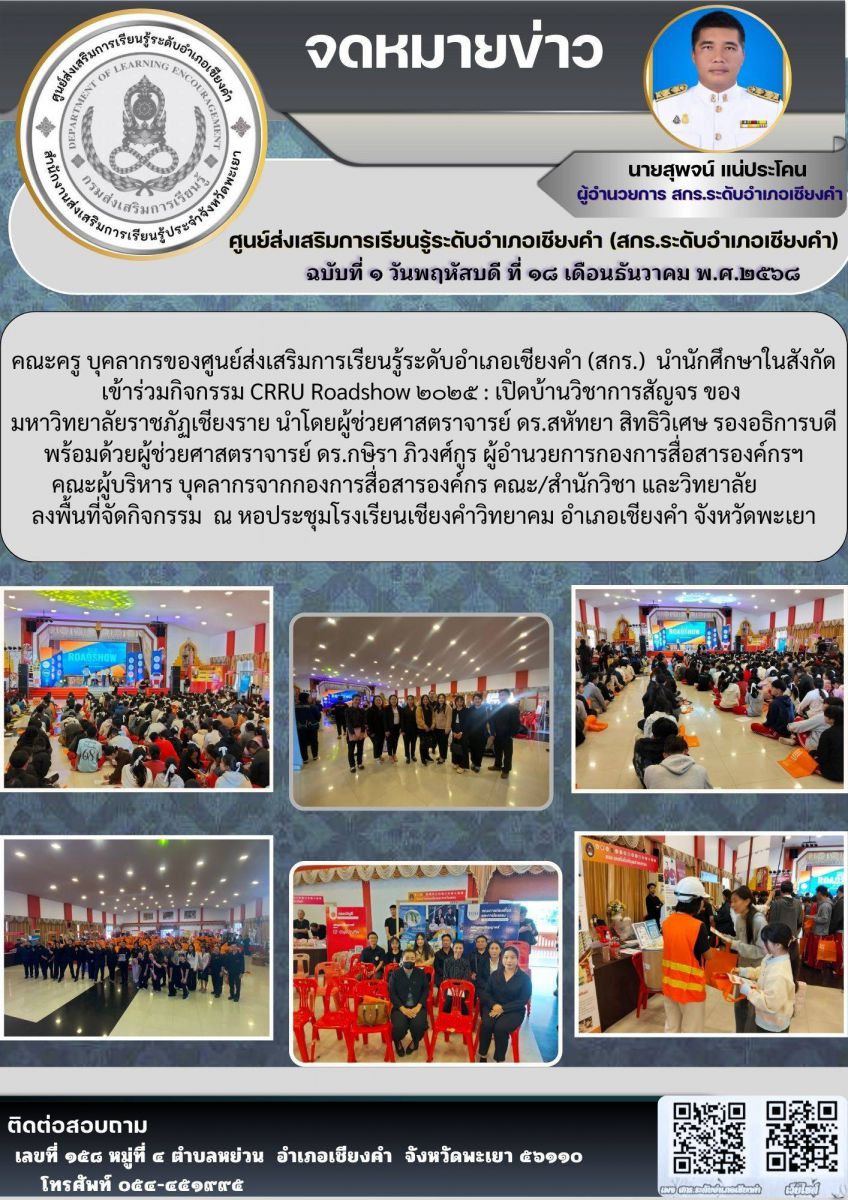 นำนักศึกษาเข้าร่วมกิจกรรม CRRU Roadshow ๒๐๒๕ : เปิดบ้านวิชาการสัญจร ของมหาวิทยาลัยราชภัฏเชียงราย...