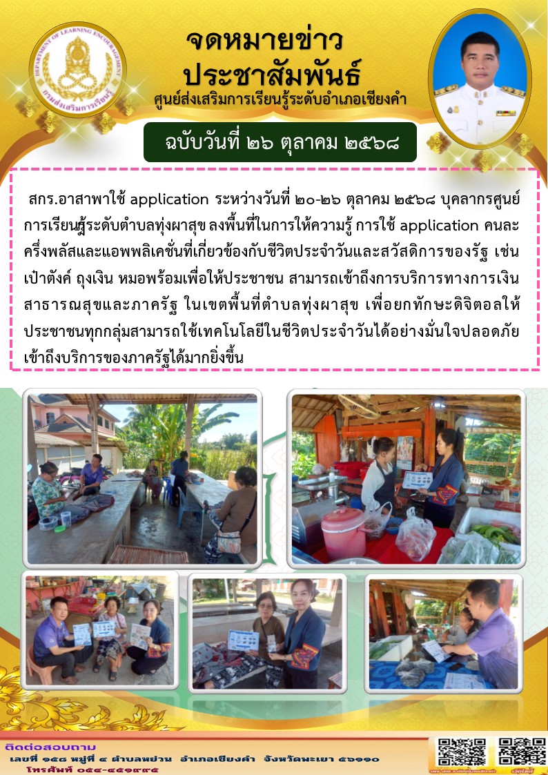ศูนย์การเรียนรู้ระดับตำบลทุ่งผาสุข ขอน้อมรำลึกในพระมหากรุณาธิคุณ เนื่องในวันคล้ายวันสวรรคตพระบาทสมเด็จพระจุลจอมเกล้าเจ้าอยู่หัว วันที่ 23 ตุลาคม วันปิ...