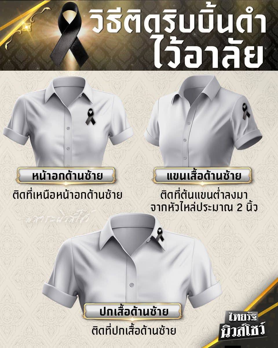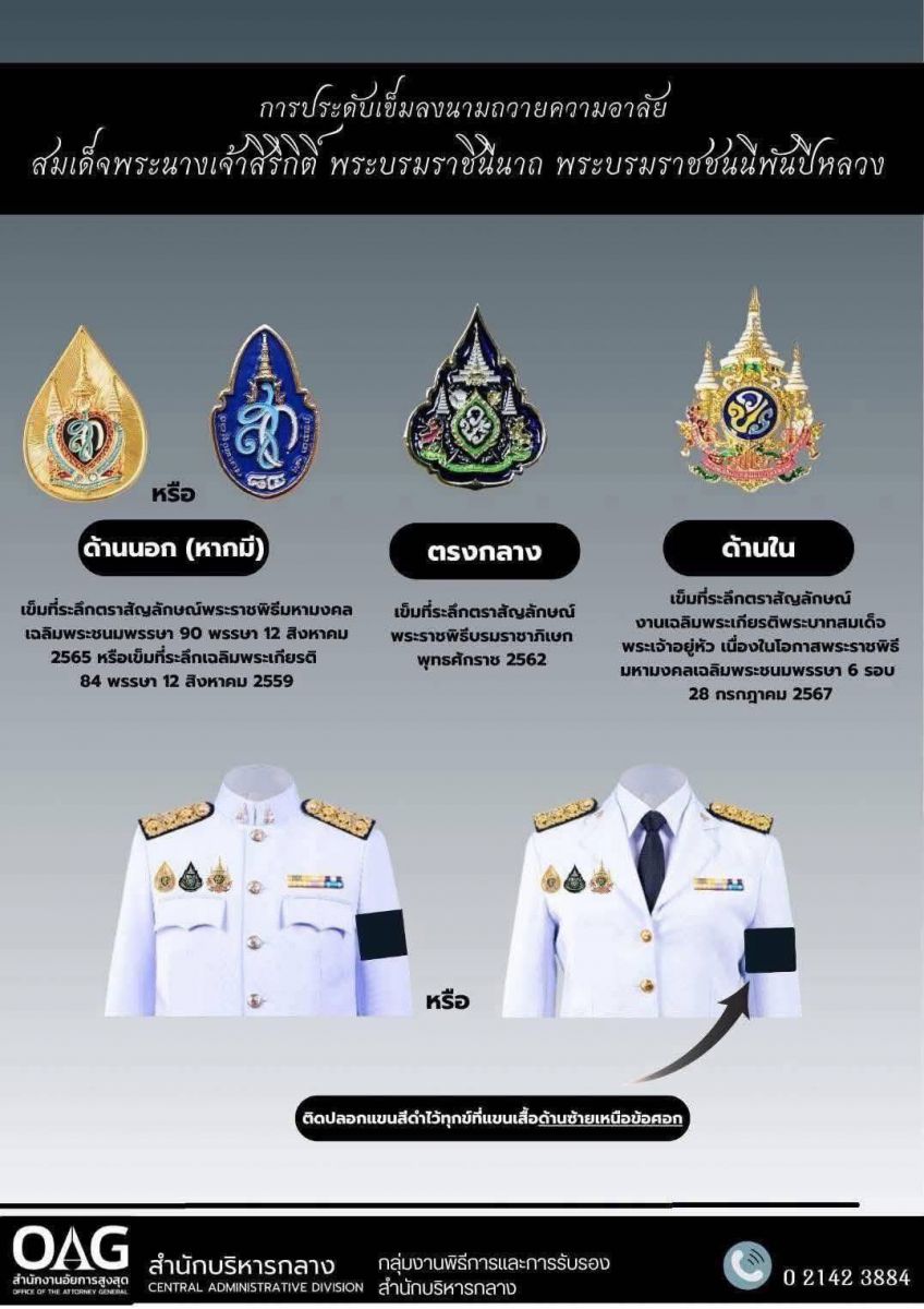 แนวปฏิบัติเกี่ยวกับการแต่งกายชุดปกติขาว และการประดับเข็ม เพื่อร่วมพิธีบำเพ็ญกุศลและร่วมถวายอาลัย สมเด็จพระนางเจ้าสิริกิติ์ พระบรมราชินีนาถ พระบรมราชชน...