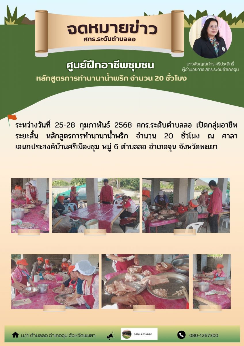 เปิดกลุ่มอาชีพระยะสั้น กลุ่มสนใจหลักสูตรการทำนานาน้ำพริก จำนวน 20 ชั่วโมง...